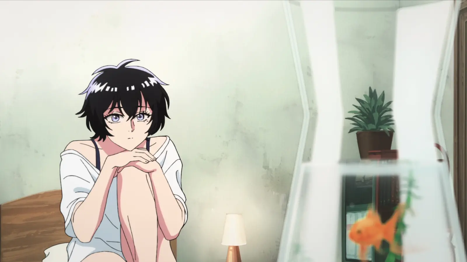 візуально - це цілком моє. естетика 90-х: приглушені пастельні кольори, шорсткі деталізовані фони. вузькі алеї, дроти, текстури міста. рідкісний випадок, коли ностальгія не перетворюється на дешевий bait. дизайн персонажів класичний, у дусі 80 - 90-х, а фони - сучасніші. цей контраст працює дивовижно. колористика стримана: блідо-сині, чорні й білі тони для Рейко; прості білі сорочки для інших. мінімалізм, але персонажі не губляться. опенінг та ендінг чудові - не пропустив жодного разу.