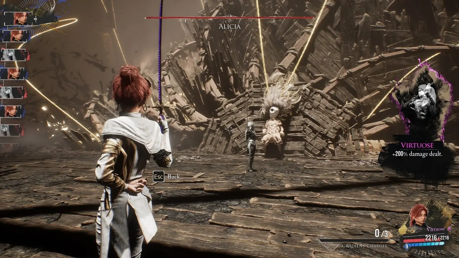 Aline обирає ескапізм. вона ховається в Полотні сина, створює його копію, відмовляється визнавати реальність. це зрозуміла людська реакція - але в масштабі Художниці вона стає злочином: заради власного спокою Aline породила цілу расу свідомих істот і ненавмисно заразила їхній світ своїм болем. її тіло й розум розпадаються - тривале перебування в Полотні буквально руйнує Художника. коли ми нарешті зустрічаємо її, від колишньої могутньої жінки залишилася зламана оболонка: тріщини замість шкіри, чорна порожнеча замість обличчя, розум, що плутає копію сина з оригіналом. вона не може зрозуміти, чому її створіння - її син - протистоїть їй. а він робить це саме тому, що вона створила його занадто добре: він переріс роль пластиру на рану.